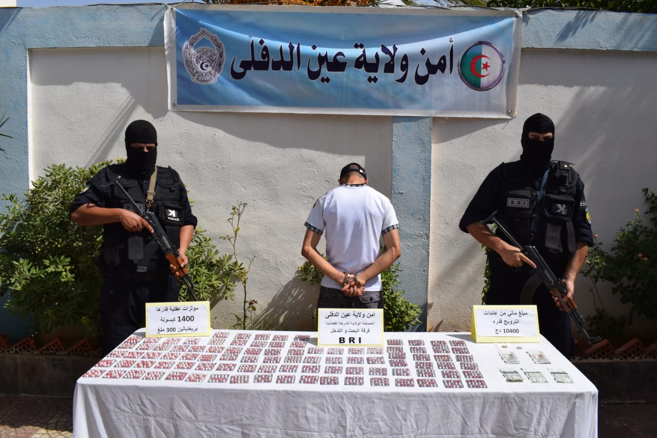 أوقفت فرقة البحث والتدخل BRIلأمن ولاية عين الدفلى مروج للمخدرات و المؤثرات العقلية على مستوى إحدى بلديات الجهة الغربية للولاية و ضبط بحوزته 1400 قرص مهلوس.