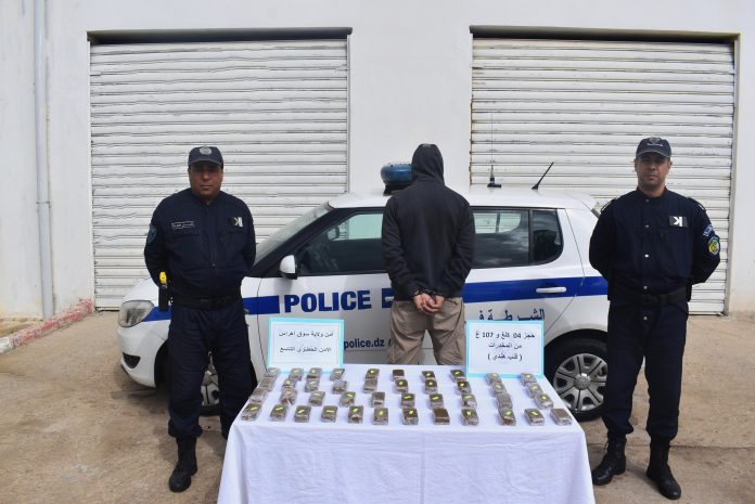 وبعد التنسيق الدائم مع النيابة المختصة لدى محكمة سوق أهراس، تم تنفيذ عملية تفتيش لمسكن المشتبه فيه، أسفرت عن حجز الكمية المذكورة وتوقيف المعني وتحويله إلى مقر المصلحة لاستكمال الإجراءات القانونية.