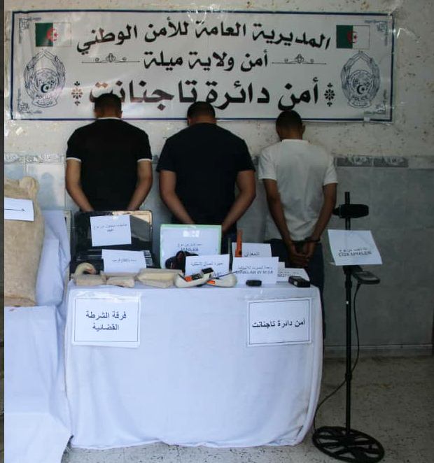 في إطار الجهود المستمرة لمحاربة الجرائم الماسة بالممتلكات الثقافية والتاريخية، تمكنت مصالح أمن دائرة تاجنانت بولاية ميلة من توقيف ثلاثة أشخاص تتراوح أعمارهم بين 45 و49 سنة، وضبط أجهزة ومعدات حساسة مخصصة للتنقيب دون رخصة.