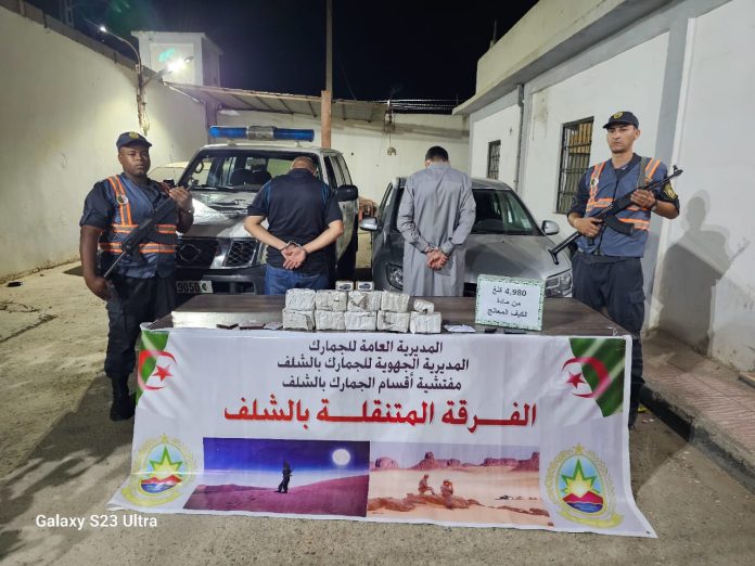 تمكنت المديرية الجهوية للجمارك بالشلف، من خلال نشاطاتها الميدانية المكثفة، من حجز كمية كبيرة من الكيف المعالج تقدر بـ 4 كلغ و9.80 غ على متن سيارة سياحية، حسبما أفادت به مصالح المديرية.