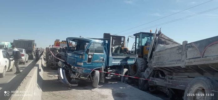 الحادث تمثل في اصطدام بين 03 شاحنات و04 مركبات وجرافة، ما أسفر عن إصابة خمسة (05) أشخاص بجروح متفاوتة الخطورة، تم إسعافهم في عين المكان ونقلهم إلى المستشفى المحلي لتلقي العلاج اللازم.