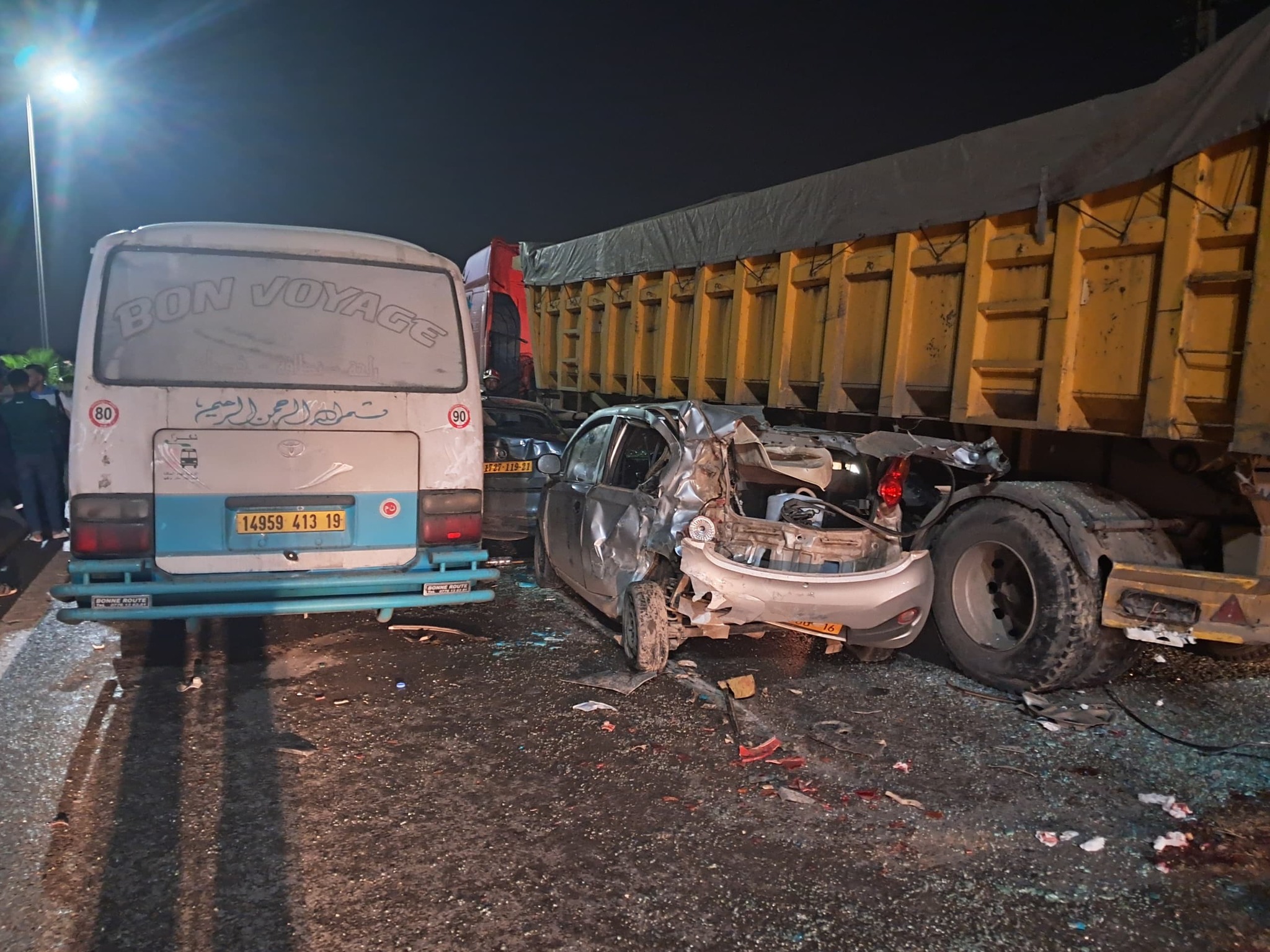 تدخلت مصالح الحماية المدنية في حدود الساعة الثانية و46 دقيقة من فجر اليوم، إثر حادث مرور خطير تمثل في اصطدام تسلسلي بين شاحنة ذات مقطورة وثلاث سيارات وحافلة لنقل العمال كانت تقل 26 راكباً، على مستوى الطريق السريع بني تامو باتجاه الجزائر، ببلدية ودائرة البليدة.