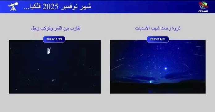 أعلن مركز البحث في علم الفلك والفيزياء الفلكية والفيزياء الأرضية عن حدوث ظاهرتين فلكيتين بارزتين في سماء الجزائر خلال شهر نوفمبر الجاري، ومن المتوقع أن تستقطبا اهتمام هواة الفلك والمتابعين.