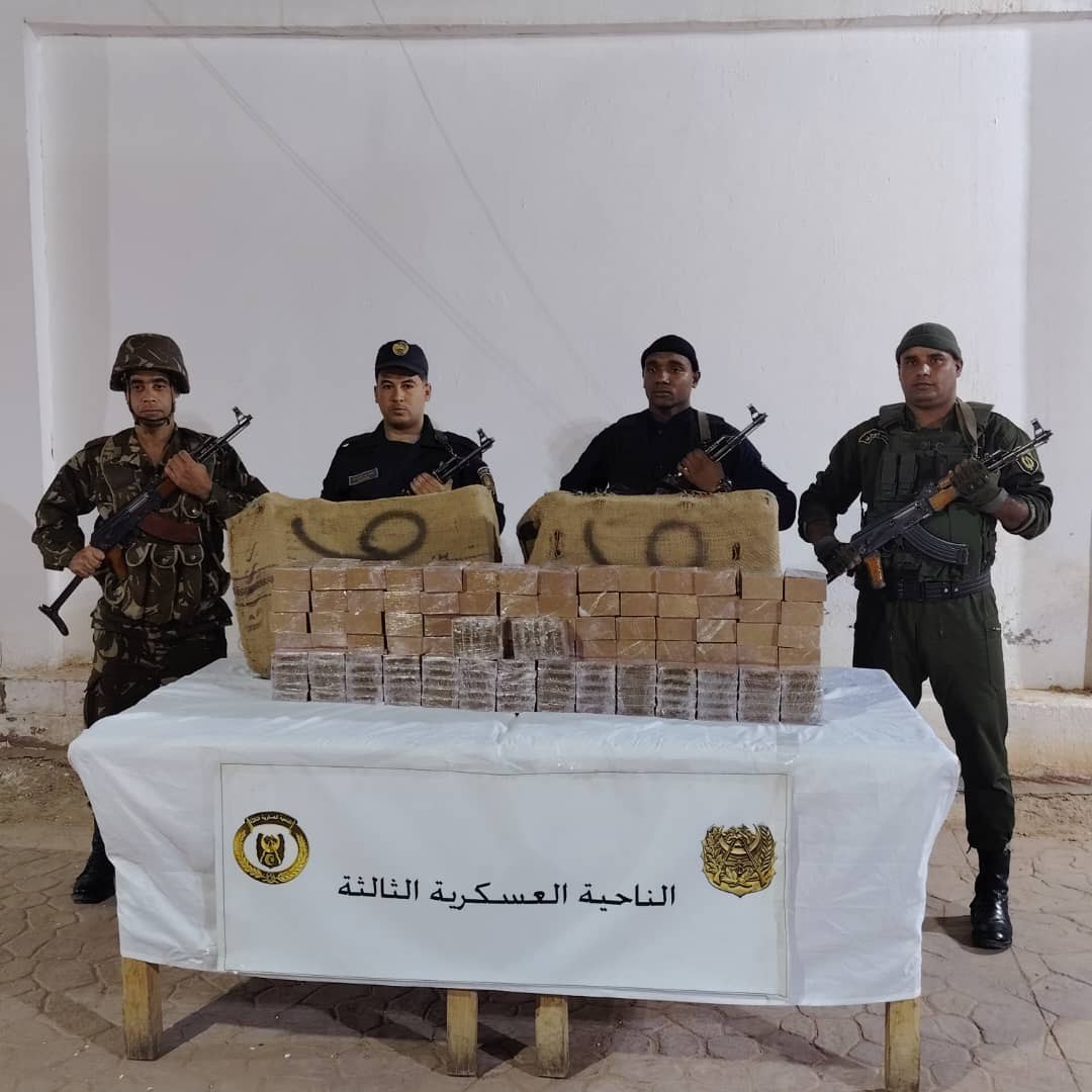 تمكنت الفرقة المتنقلة للجمارك التابعة لمفتشية أقسام الجمارك بأدرار، بالتعاون مع الجيش الوطني الشعبي، الدرك الوطني، والأمن الوطني، من حجز كمية معتبرة من المخدرات تقدر بـ 51,200 كيلوغرام من الكيف المعالج، كانت مخبأة داخل مستثمرة فلاحية.