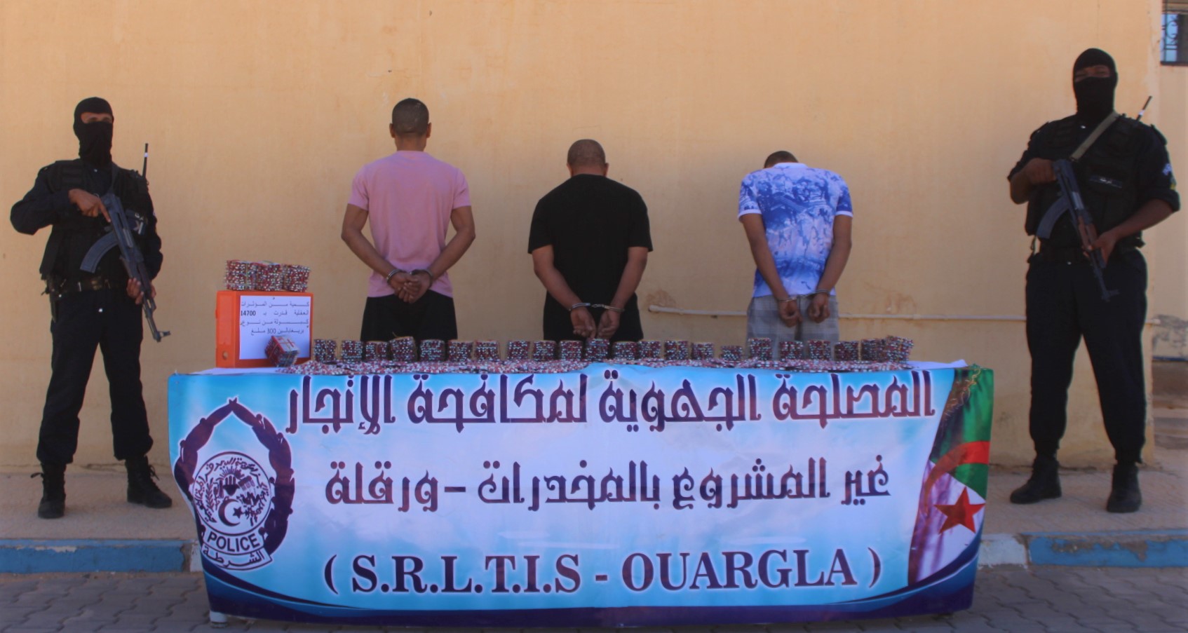 في إطار مكافحة الجريمة المنظمة، ولا سيما ما تعلق منها بالاتجار غير المشروع بالمخدرات والمؤثرات العقلية، تمكن عناصر المصلحة الجهوية لمكافحة الاتجار غير المشروع بالمخدرات بورقلة، خلال الأسبوع المنصرم، من تفكيك شبكة إجرامية منظمة تتكون من ثلاثة (03) أشخاص، مع ضبط كمية معتبرة من المؤثرات العقلية.