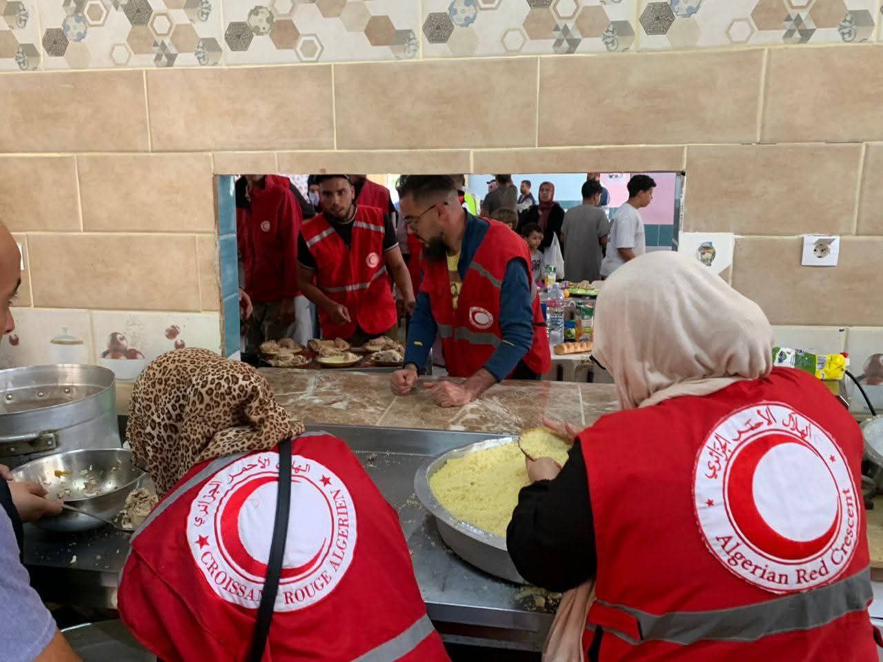 أشرف متطوعو الهلال الأحمر الجزائري على تحضير وجبات غذائية لفائدة العائلات التي تم إجلاؤها جراء الحرائق بإبتدائية بوعبد الله ببلدية مسلمون ولاية تيبازة.