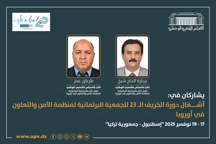 يشارك النائبان بربارة الحاج شيخ وطرباق عمر في أشغال دورة الخريف الـ23 للجمعية البرلمانية لمنظمة الأمن والتعاون في أوروبا، المزمع عقدها في مدينة إسطنبول خلال الفترة من 17 إلى 19 نوفمبر 2025.