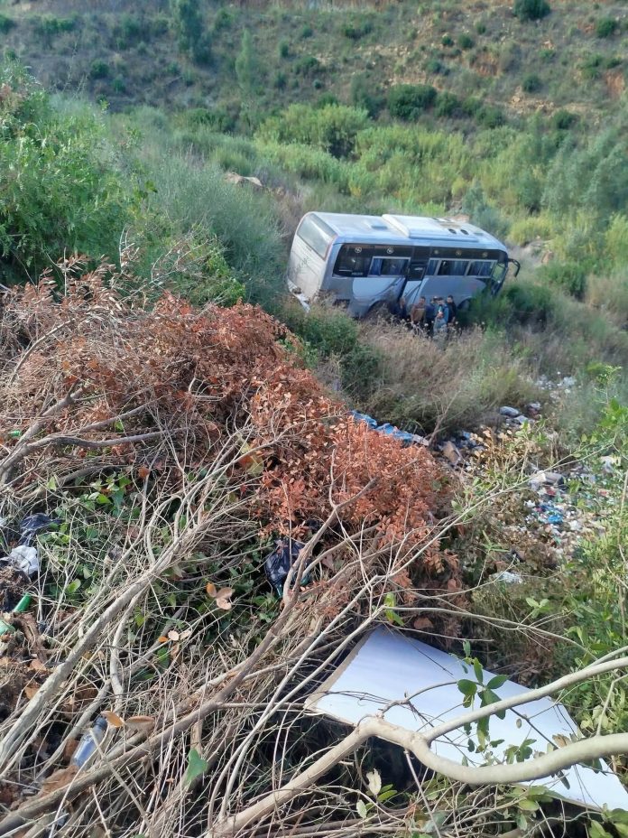تدخلت مصالح الحماية المدنية، اليوم في حدود الساعة 14:02، عقب حادث مرور تمثل في انحراف حافلة لنقل المسافرين وسقوطها في منحدر بالطريق الوطني رقم 25، على مستوى بلدية آيت يحي موسى بدائرة ذراع الميزان.