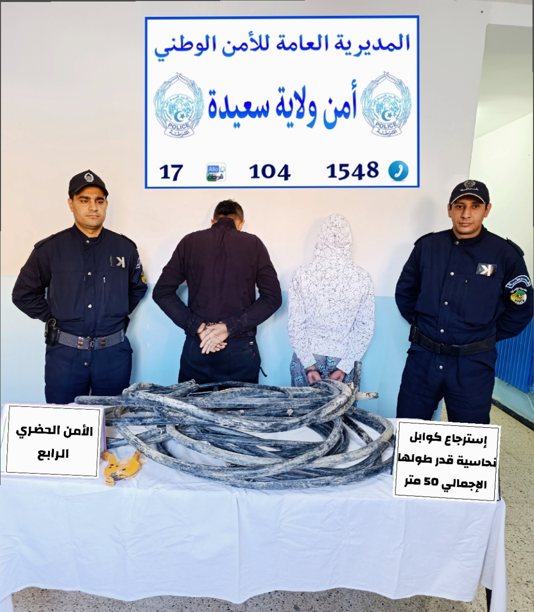 في إطار الجهود المتواصلة لمحاربة الجريمة بمختلف أشكالها، تمكن عناصر الأمن الحضري الرابع بأمن ولاية سعيدة من تفكيك جمعية أشرار تنشط في مجال سرقة الكوابل النحاسية.