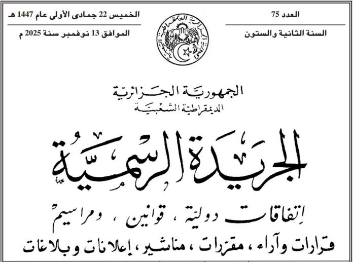 صدر في العدد 75 من الجريدة الرسمية مرسوم رئاسي جديد يقضي بوضع الديوان الوطني للإحصائيات تحت وصاية الوزير الأول، وذلك بموجب المرسوم الرئاسي رقم 25-293 الموقع من طرف رئيس الجمهورية، السيد عبد المجيد تبون، بتاريخ 10 نوفمبر الجاري.