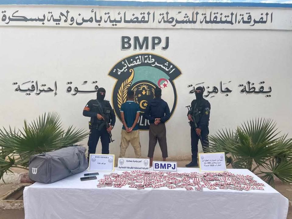 تمكنت الفرقة المتنقلة للشرطة القضائية بسكرة من توقيف شخصين محل خمسة أوامر بالقبض، وحجز 1920 كبسولة من المؤثرات العقلية من نوع بريقابلين 300 ملغ بحوزتهما.