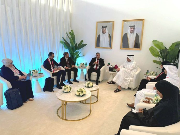 عُقد اليوم اجتماع بين وزير البريد والمواصلات السلكية واللاسلكية الجزائري، السيد سيد علي زروقي، ووزير الاتصالات وتكنولوجيا المعلومات القطري، السيد محمد بن علي بن محمد المناعي، بحضور سفير الجزائر لدى دولة قطر، السيد صالح عطية، والوفد المرافق له.