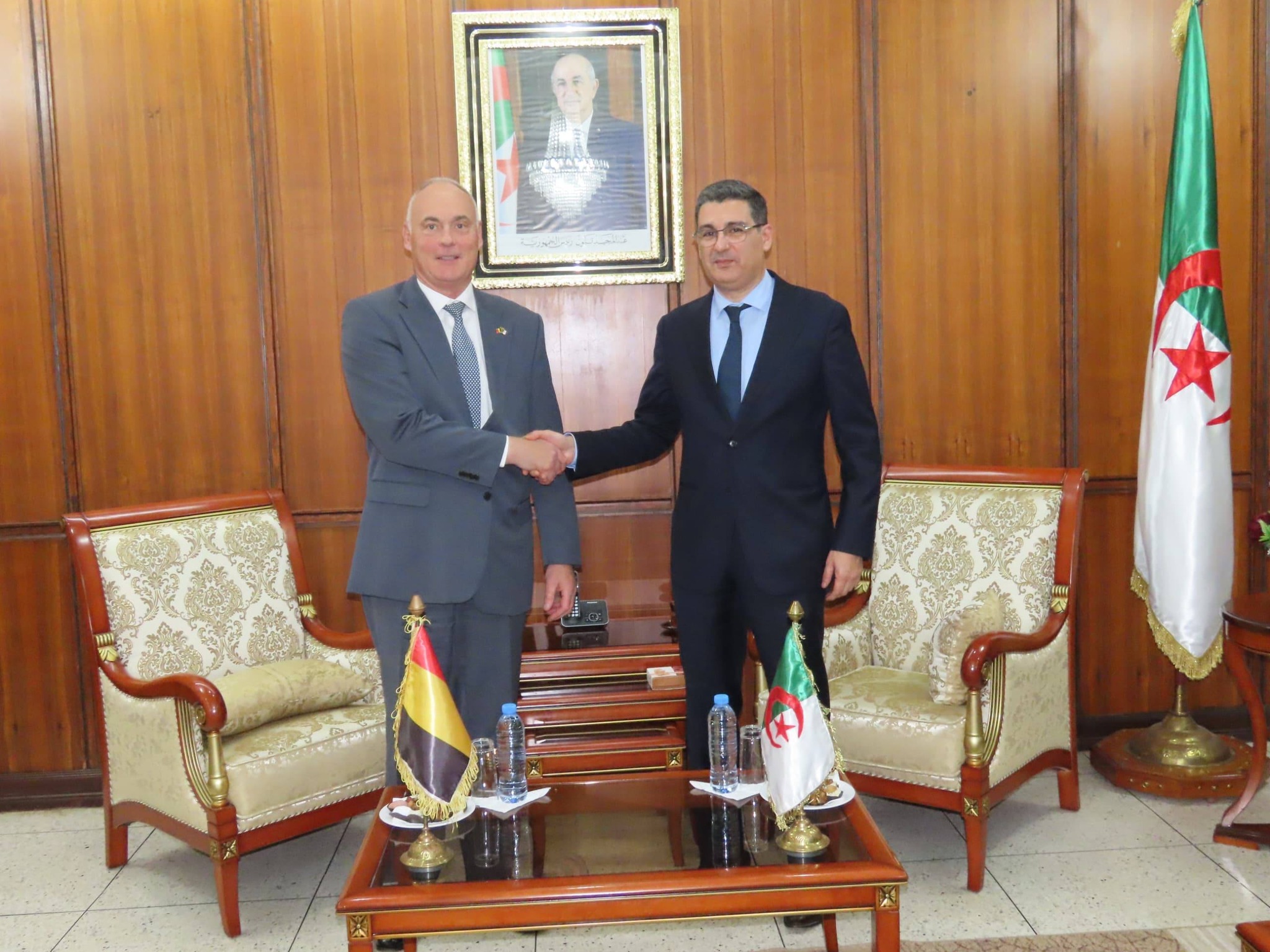 وخلال هذا اللقاء، أشاد الطرفان بمستوى العلاقات الودية والمتميزة التي تجمع الجزائر بمملكة بلجيكا، والقائمة على أسس متينة من الاحترام المتبادل والمنفعة المشتركة، والمستمدة جانبًا مهمًا من بعدها الإنساني والتاريخي. وفي هذا السياق، ذكّر السيد الوزير بالمواقف التضامنية التي أبدتها بلجيكا خلال الثورة التحريرية المجيدة، ودعمها لحق الشعب الجزائري في الحرية والاستقلال، إلى جانب الديناميكية الإيجابية التي تعرفها العلاقات الثنائية بين البلدين.
