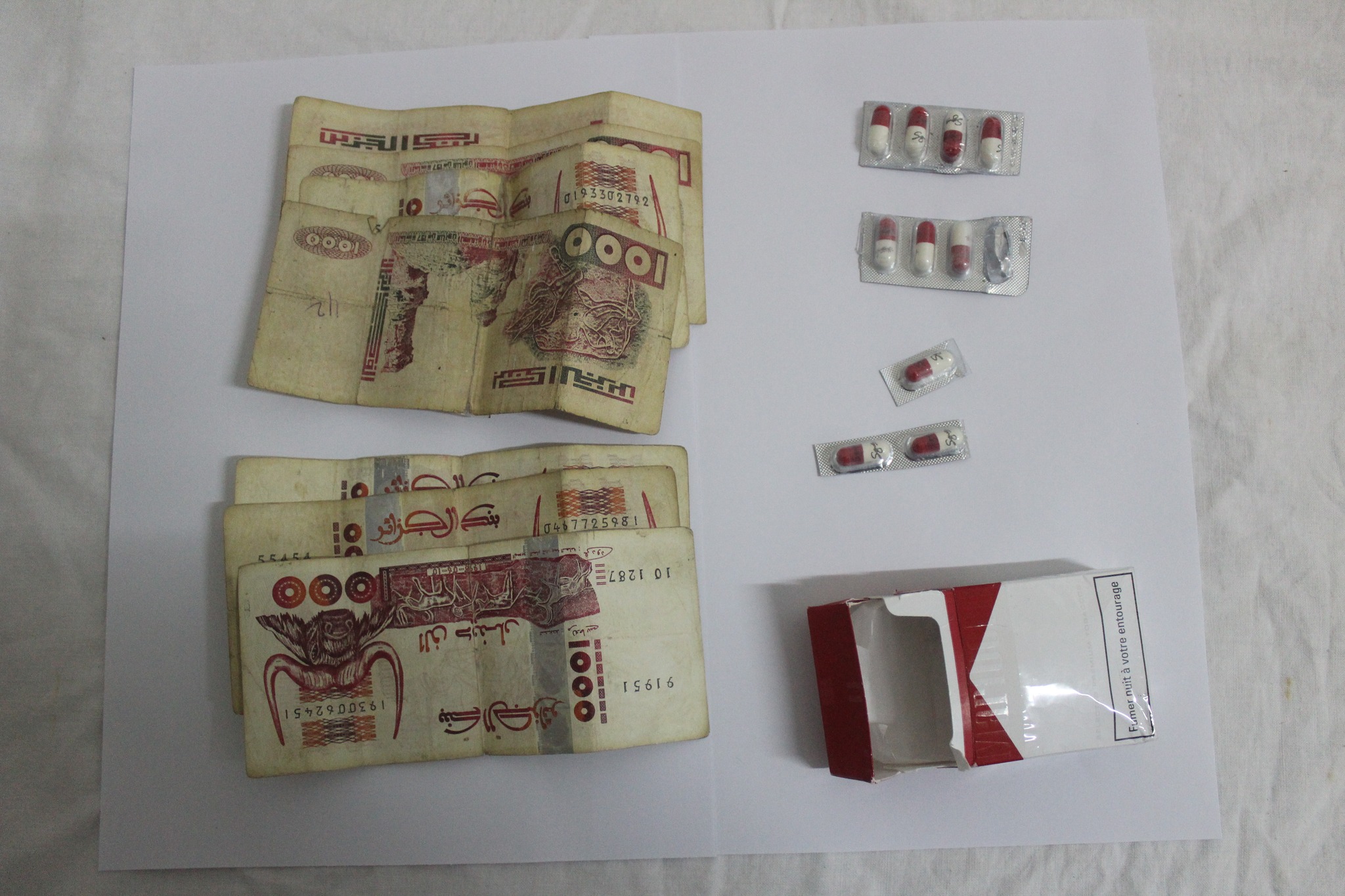 وتتعلق القضية الأولى بتوقيف أحد مروجي المؤثرات العقلية على مستوى حي سيدي إبراهيم بالمشروحة، حيث أسفرت العملية عن حجز كمية من المؤثرات العقلية قُدّرت بـ10 أقراص، إضافة إلى مبلغ مالي قدره 7000 دج يُشتبه في كونه من عائدات البيع. وبعد تقديم المشتبه فيه أمام نيابة محكمة سوق أهراس، صدر في حقه أمر إيداع بالحبس لمدة سنتين (02) حبسا نافذا.