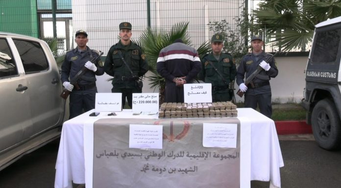 تمكنت المجموعة الإقليمية للدرك الوطني بسيدي بلعباس، بالتنسيق مع مصالح الجمارك، من توقيف شخص يبلغ من العمر 35 سنة بتهمة حيازة ونقل وتخزين المخدرات (كيف معالج) بغرض الإتجار ضمن جماعة إجرامية منظمة.