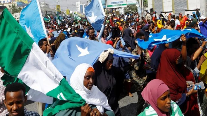 خرج آلاف المواطنين في شوارع مقديشو بمظاهرات حاشدة، مردّدين شعارات قوية ضد أي محاولات لتقسيم البلاد والتدخلات الأجنبية في الشؤون الداخلية، في مشهد يعكس وحدة الصف الشعبي ورفض أي مساس بسيادة الصومال.