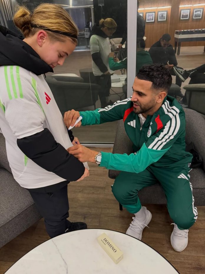 فبعد نهاية اللقاء، خصّ قائد المنتخب الوطني رياض محرز هذا الطفل بلحظة إنسانية مميزة، حيث تحدث معه ومنحه قميصًا موقّعًا منه.