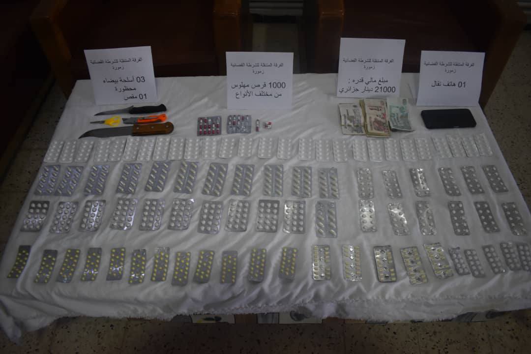 تمكّنت الفرقة المتنقلة للشرطة القضائية بزمورة، التابعة لأمن ولاية غليزان، من توقيف شخص وحجز كمية معتبرة من المؤثرات العقلية تُقدّر بحوالي 1000 قرص، وذلك في إطار الجهود المتواصلة لمحاربة الجريمة بشتى أنواعها، خاصة المتعلقة بالمتاجرة غير المشروعة بالمخدرات والمؤثرات العقلية.