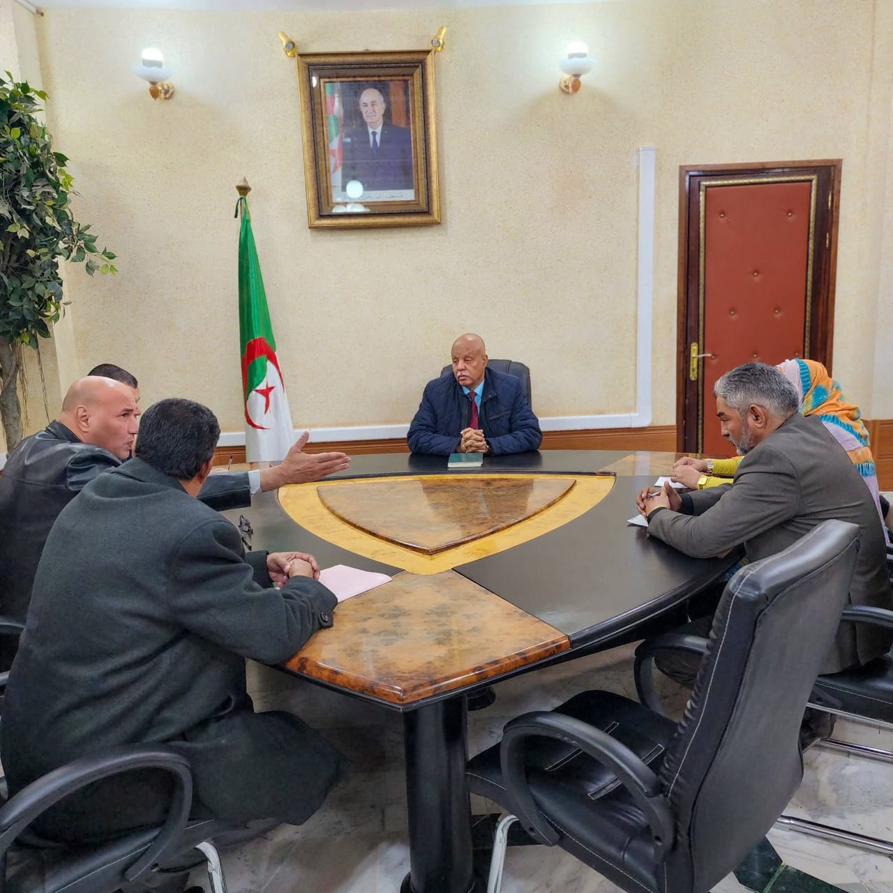 ترأس والي ولاية تندوف السيد دحو مصطفى صباح يوم الأربعاء 31 ديسمبر 2025 اجتماعاً خاصاً بمتابعة وضعية المشاريع التنموية لبلدية أم العسل. حضر الاجتماع الأمين العام للولاية، مدير الإدارة المحلية، رئيس بلدية أم العسل، أمين خزينة البلدية، والمراقب الميزاني للبلدية، حيث ركزت الجلسة على تقييم التقدم المحرز في هذه المشاريع التنموية الحيوية.