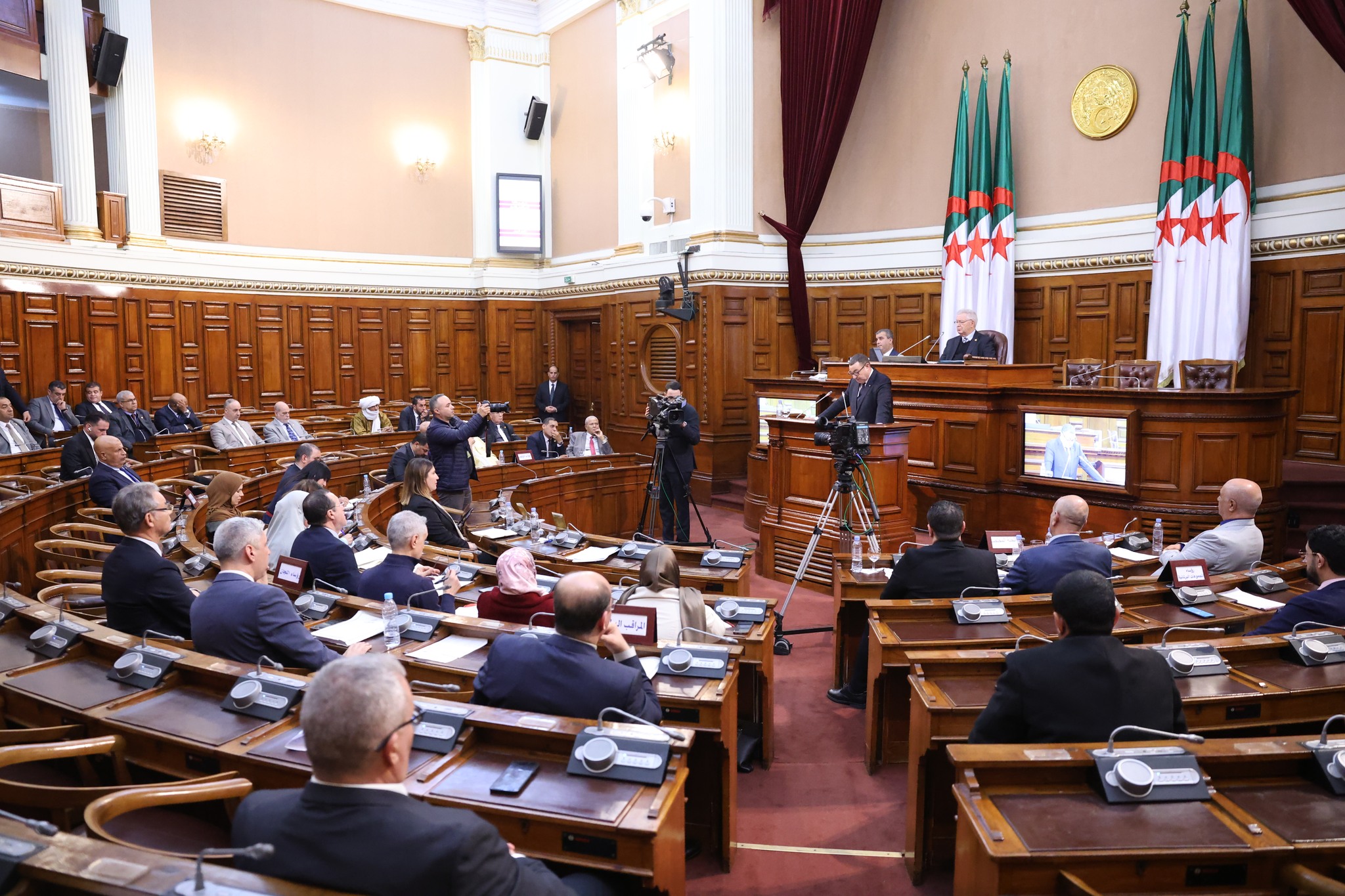 عقد مجلس الأمة، اليوم الخميس 15 جانفي 2026، جلسة عامة خُصصت لعرض ومناقشة نص قانون يتضمن قانون المرور، وذلك برئاسة السيد عزوز ناصري، رئيس مجلس الأمة، وبحضور ممثل الحكومة السيد سعيد سعيود، وزير الداخلية والجماعات المحلية والنقل، إلى جانب السيدة نجيبة جيلالي، وزيرة العلاقات مع البرلمان.